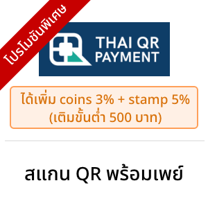 - เฉพาะการเติมผ่านช่องทาง QR Payment (โปรโมชันพิเศษ) ครั้งแรกของวัน