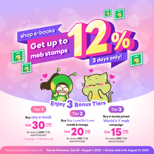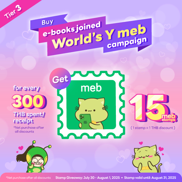 Buy e-books participating in the World’s Y meb campaign and get 15 meb stamps for every 300 THB spent per receipt. (1 stamp = 1 THB discount)