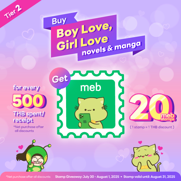 Buy Boy Love/ Girl Love novels & manga get 20 meb stamps for every 500 THB spent/ receipt (1 stamp = 1 THB discount)